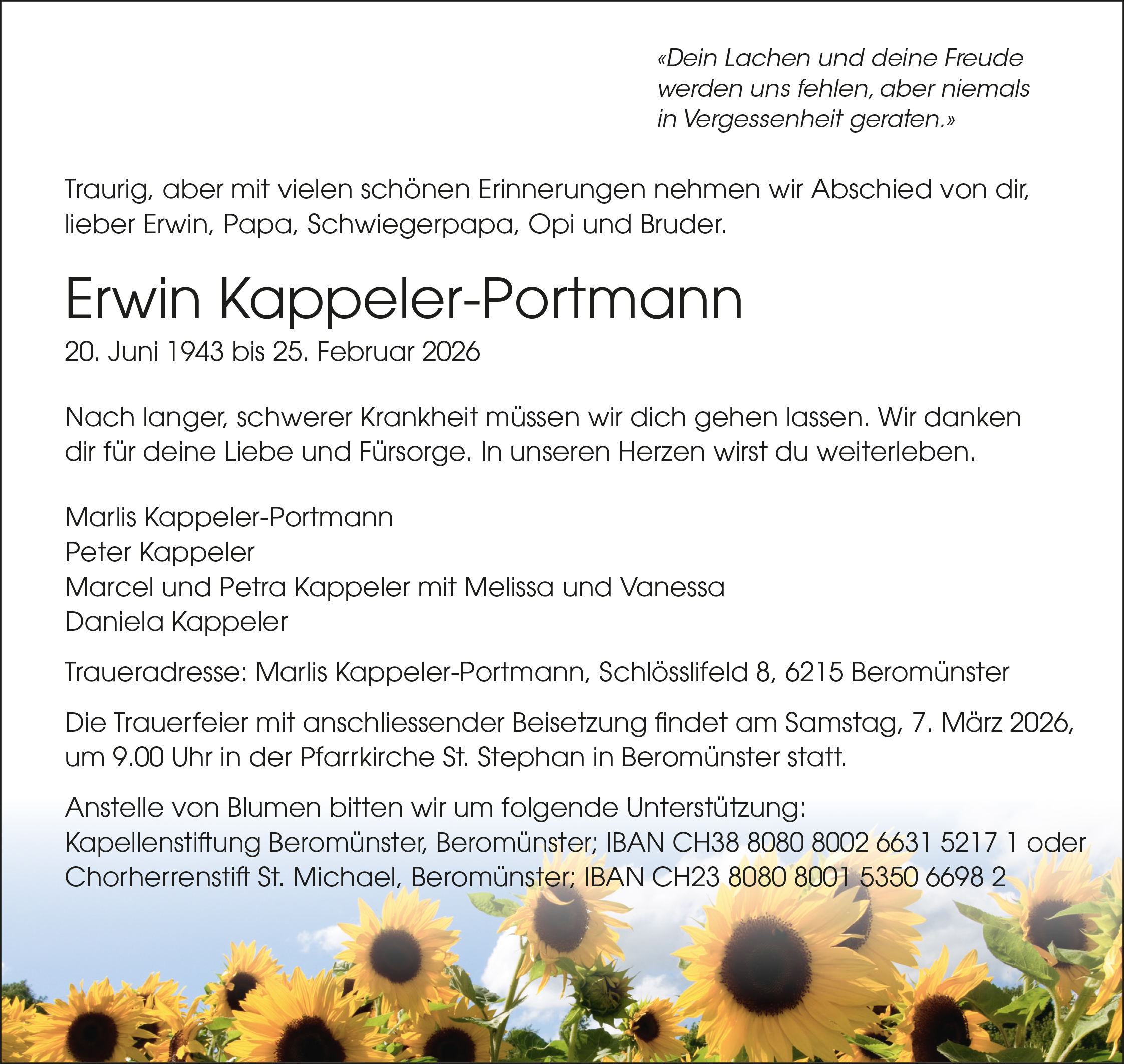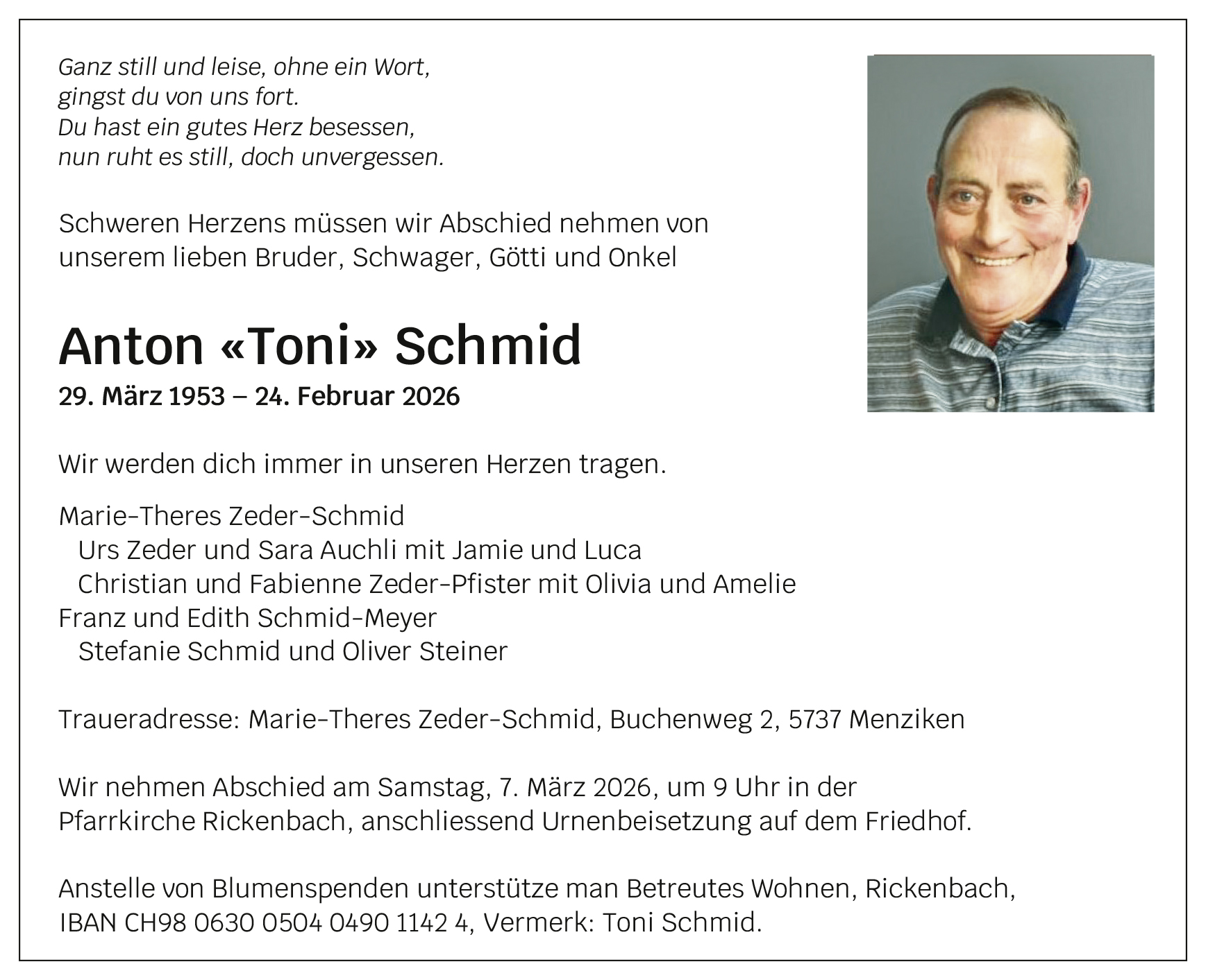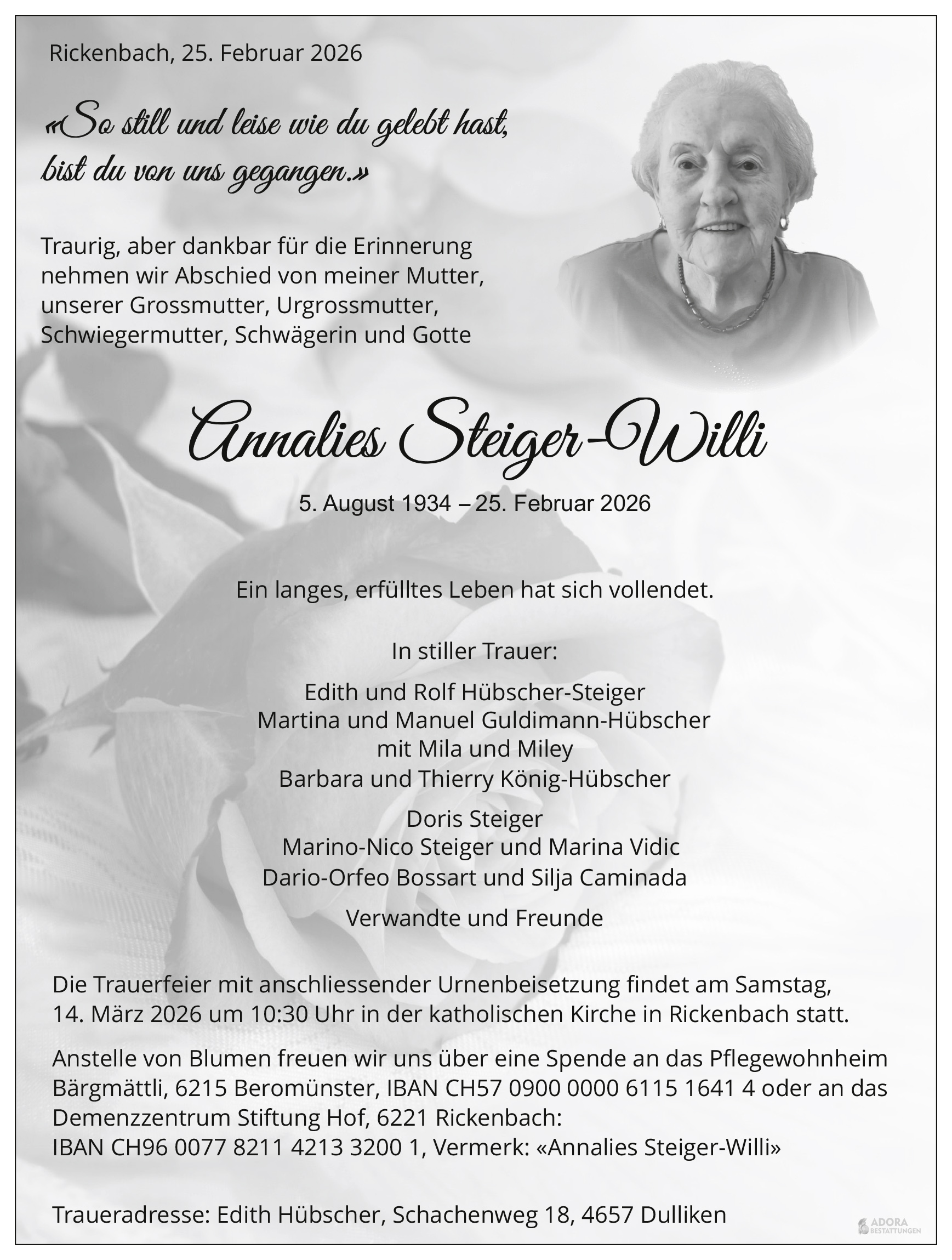 Gemeinde Rickenbach, Gemeinde Hildisrieden, Gemeinde Römerswil oder vom Pastoralraum Michelsamt.