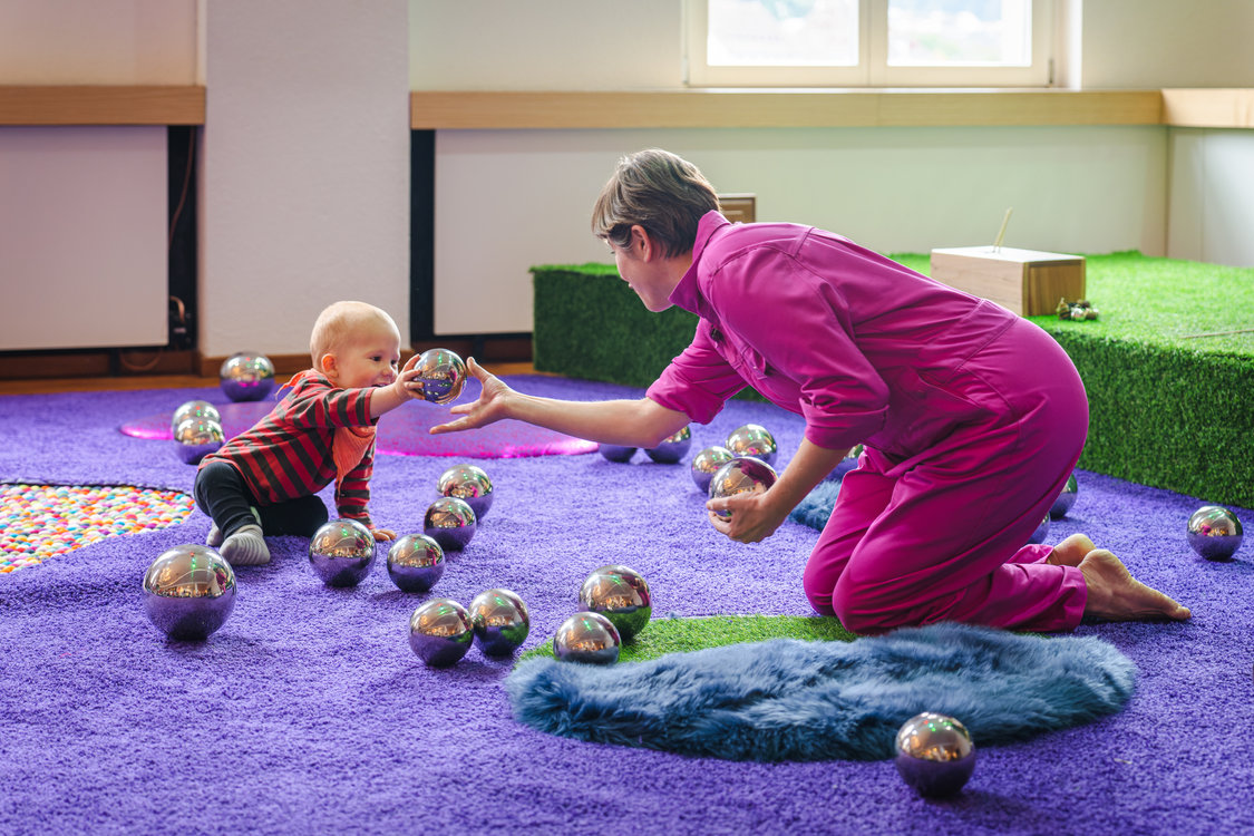 Die Babys dürfen tun, wonach ihnen gerade ist, und Luca und Isa reagieren mit Kontrabass, Stimme, Zungentrommel und Shruti-Box darauf.