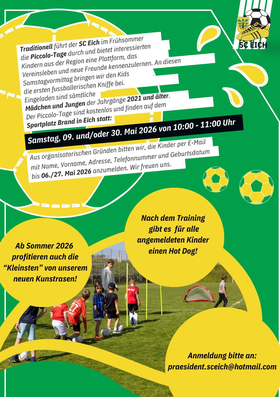 Traditionell führt der SC Eich im Frühsommer die Piccolo Tage durch und bietet interessierten Kindern aus der Region eine Plattform, das Vereinsleben und neue Freunde kennenzulernen.