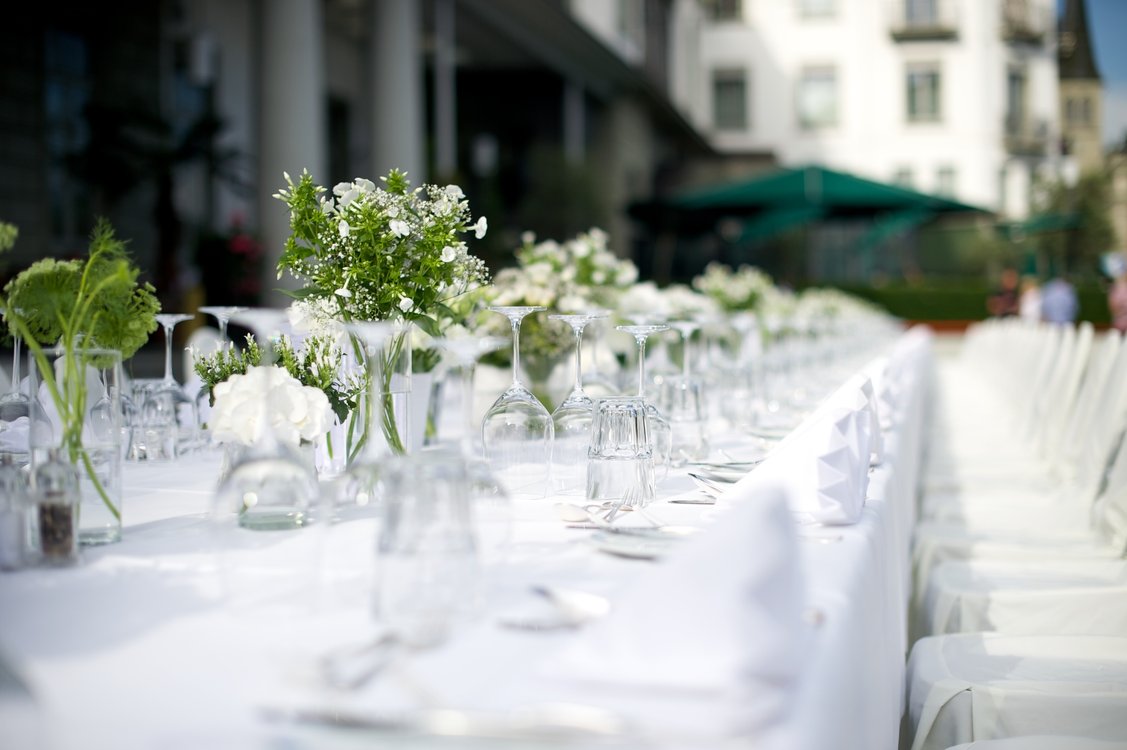 Vor dem Luzerner Festivalhotel erwartet die Gäste eine festlich gedeckte Tafel, eingehüllt in die strahlende weisse Eleganz. Tauchen Sie ein in ein unvergessliches Ambiente und kleiden Sie sich ganz in Weiss, um diesen Abend stilvoll zu geniessen.
