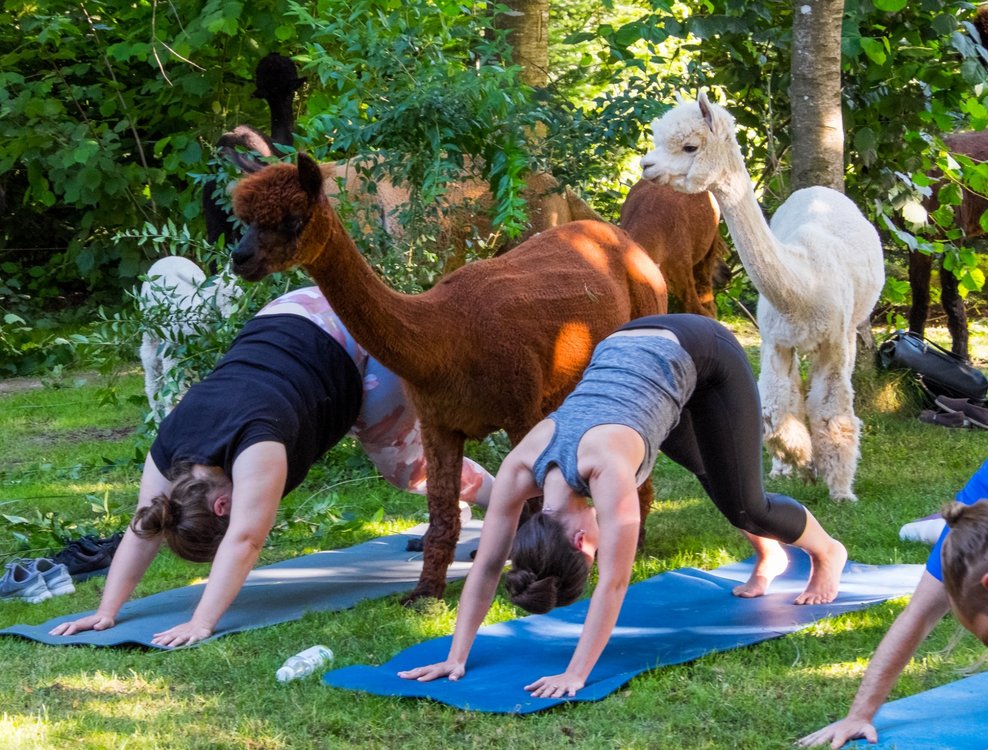Yoga inmitten Alpakas