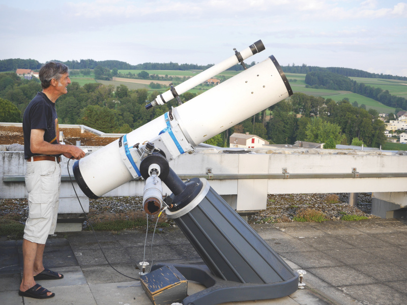 Im Sommer 1990 telefonierte mir derselbe Kollege – er war zu dieser Zeit Leiter der Sternwarte Sursee auf dem Dach des Schulhauses Kotten – und fragte mich, ob ich das Teleskop der Surseer Sternwarte haben möchte (Bild 1). Der Stadtrat habe 20'000 Franken gesprochen, womit sie nun ein neues, besseres Teleskop anschaffen könnten. «Du kannst das Alte gratis haben, einzige Bedingung ist, dass es öffentlich zugänglich sein sollte».