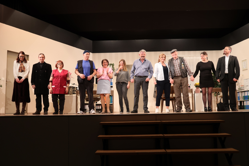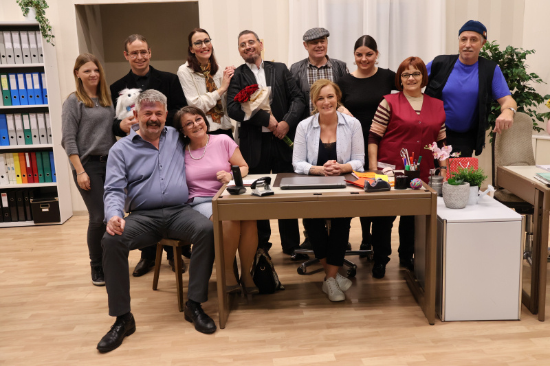 Im starken, geschlossenen Team ragen Geni Burkhard aus Gunzwil als Franz Matter und Andrea Garcia aus Eich als dessen Sekretärin Hanni besonders heraus. Armin Aregger spielt Karl-Heinz von Stetten, Manuela Giger seine dominante Frau Louise, und Regisseur Jöggu Rey spielt Sepp, fast wie ein Spielertrainer. «Ich schaue sehr entspannt und zuversichtlich der Premiere entgegen», sagt Jöggu Rey nach der Hauptprobe. Silvia Schaller gibt Matters Frau Helen, Veronica Giger glänzt als Schwatzbase Emma. Armin Areggers Bruder Patrick spielt Gottlieb den Psychiatrie-Professor. Doch auch Novizin Petra Albisser als Hermine fügt sich stark ein. Jede und jeder der 60 Mitglieder im Verein ist wichtig für das Gesamterlebnis, auch das Schminkteam, das Festwirtschaftsteam, das Reservationsteam, die Technik/Beleuchtung und viele weitere.