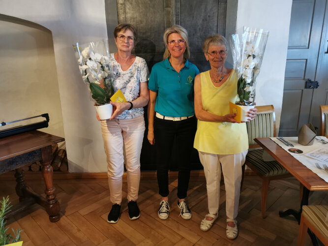 Daniela bedankt sich für die gute Zusammenarbeit im Vorstand bei Rosmarie Stutz und Theres Burkart (fehlt auf dem Foto).Text und Bilder: Corina Furter