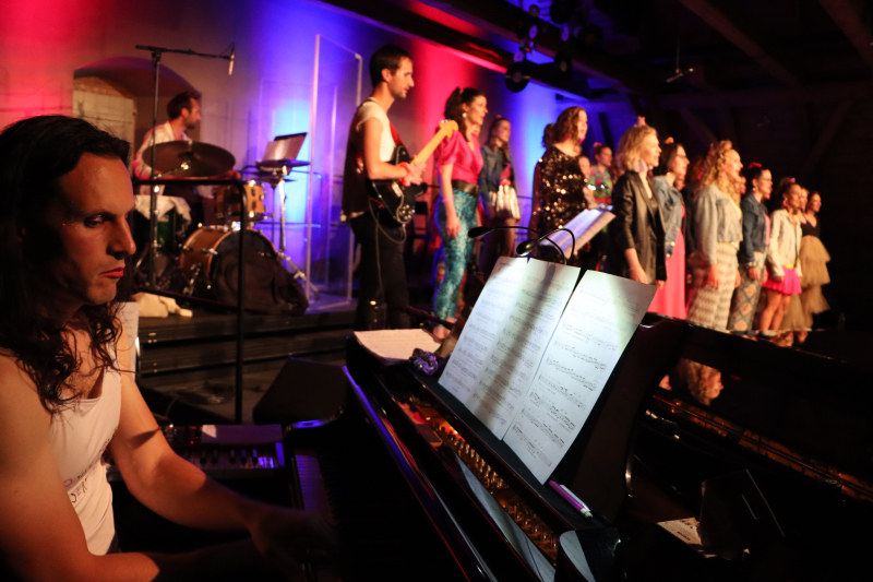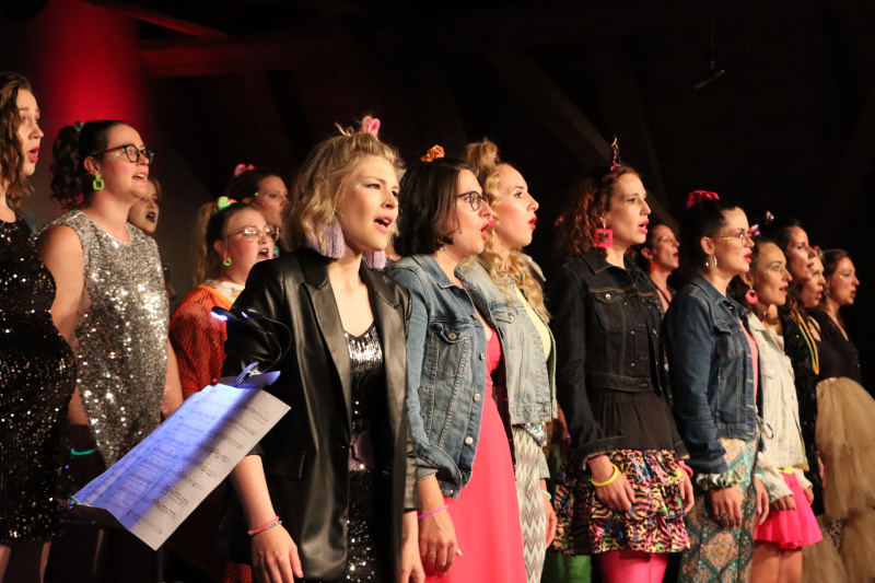 Zeitlos gute Musik zeigt sich daran, dass Menschen sie interpretieren können, die noch nicht mal geboren waren, als sie entstand. So auch der Vidas-Chor. «Wir waren Kinder oder noch nicht einmal auf der Welt, als diese Welthits entstanden», erklärte die Ansagerin charmant, «und wir massen uns nicht an, an deren Niveau heranzukommen, aber wir lieben diese Songs und singen sie mit Leidenschaft!» So war es auch. Mit ansteckend sprühender und rockiger Leidenschaft, mit bunten Lycra-Leggings, glitzernden Tops, pinken Make-ups, fliegenden Haarmähnen und einer satten Prise Sexappeal brachten die Chorsängerinnen den Groove der 80er wohlklingend und abgestimmt hinüber. Dass die Sache auf solider Basis gründete, hörte man vom ersten Takt an: Professionell die musikalische Leitung von Regina Lötscher und Stefanie Erni, wie auch die Begleitung der Band (Roman Naef, Schlagzeug; Florestan Berset, Gitarre; Antonin Boinay, Piano).