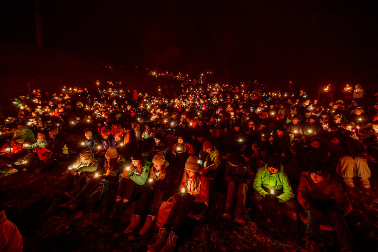 Über 650 Jugendliche, junge Erwachsene und Familien waren am 16./17. Dezember von Sachseln gemeinsam unterwegs nach Flüeli-Ranft. Inmitten von Spiel, Gespräch und Bewegung setzten sie sich mit dem Motto «Es wimmelt» auseinander. Als Höhepunkt feierten sie mit der Friedensfeier um 3 Uhr morgens in der Ranftschlucht ein Weihnachtsfest der ganz besonderen Art. Angeleitet durch die Worte von Markus Thürig, Generalvikar des Bistums Basel, reichten sie sich das Friedenslicht weiter.
