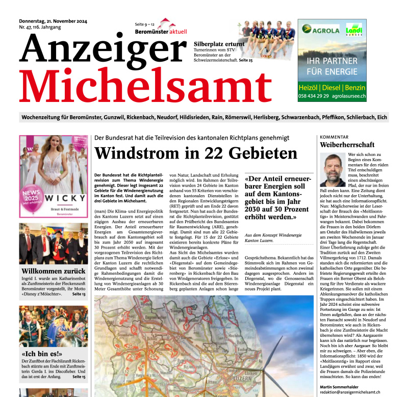 Das E-Paper ist wie gewohnt auf michelnews.ch aufgeschaltet.