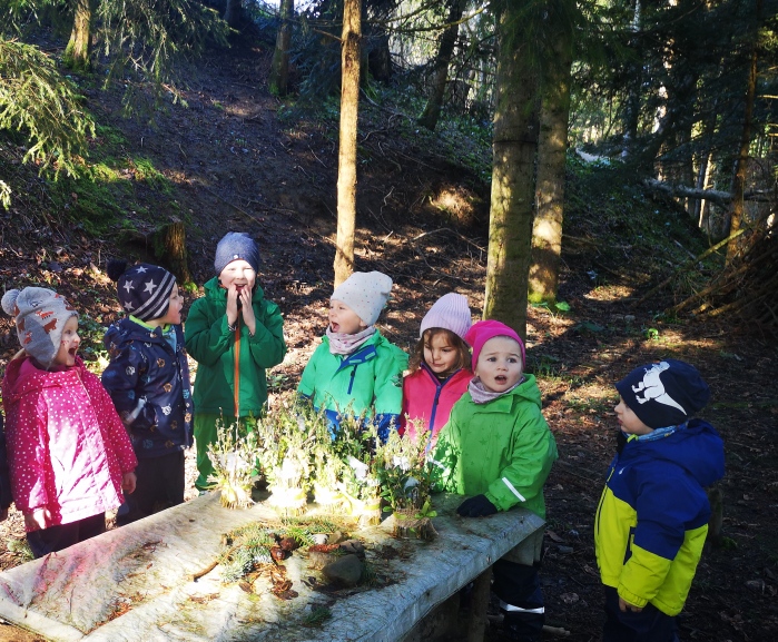 Seit einigen Wochen waren die Kinder ganz fleissig am Basteln. Wunderschöne Kunstwerke sind entstanden. Die Osternestli waren bereit, um mit Leckereien befüllt zu werden. Kommt er oder kommt er nicht? Im Wald und im Raum haben alle ganz gespannt auf den Osterhasen gewartet. Am Montagmorgen in der Früh haben sich die Waldkinder auf die Suche gemacht und nach dem Osterhasen gerufen. Und tatsächlich: Sie haben die mit Schoggi-Eier befüllten Nestli gefunden. Die Freude war riesig. Danach haben alle zusammen noch Hasengeschichten erzählt und Osterspiele gemacht. Das Wetter hat wieder mal prächtig mitgespielt.