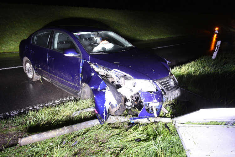 Betrunkener fährt Verkehrstafel um