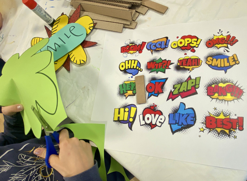 Etwa 25 neugierige, comic-interessierte und kreative Kinder haben sich, zum Teil mit ihren Eltern, auf das Abenteuer eingelassen und ihr Lieblingswort gestaltet, eine eigene Comicfigur entworfen oder sich in der Lesehöhle zurückgezogen und die Ruhe genossen.