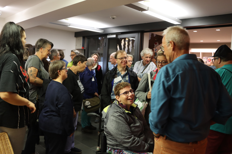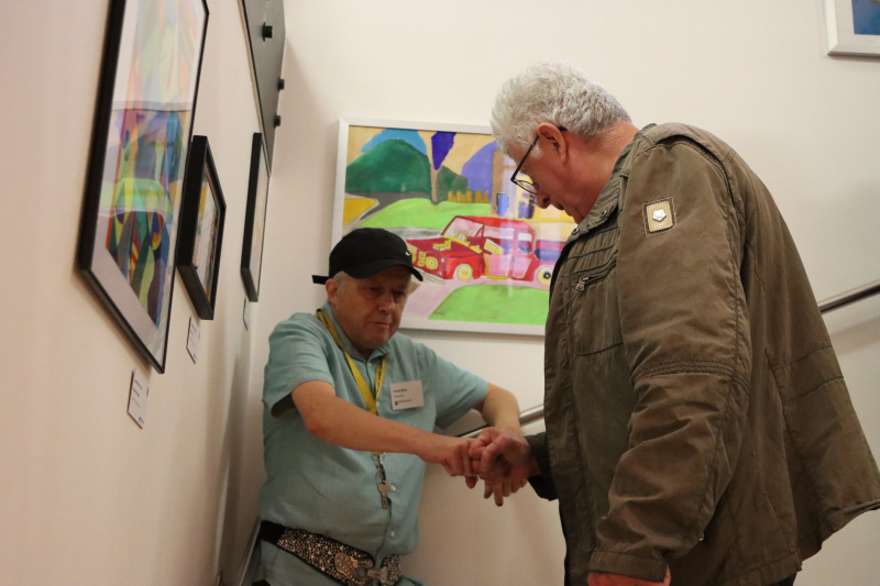 Die Resonanz beim zahlreichen Vernissagepublikum war auch dementsprechend. «Mega!», sagten viele und strahlten. «Diese Farben... und lauter fröhliche Leute!» Viele Gäste hatten einen persönlichen Bezug zur Werkgruppe AWB Sursee, es gab aber auch solche, die aus reinem Interesse die Vernissage besuchten. Wie etwa das junge Paar, das fasziniert die Bilder betrachtete und mit den Künstlern ins Gespräch kam. «Es ist sehr spannend», sagten sie, «die Bilder haben klare Aussagen in einzigartigem Stil. Und sie sind immer fröhlich, sogar das Bild von der Beerdigung!» Die Künstler seien stolz auf ihre Werke, ohne eingebildet zu sein, fanden sie. Amüsiert und beeindruckt beschrieb die junge Frau, wie sie einem Künstler ein Kompliment gemacht und gesagt habe, sein Bild sei schön – und er habe geantwortet: «Ja, das stimmt.»