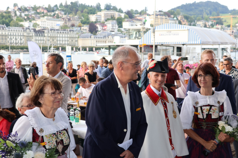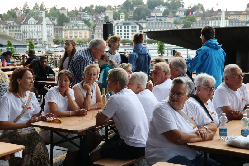 «Es freut mich, dass 53 Personen in Luzern ein weisses Hildisrieder T-Shirt tragen und Hildisrieden repräsentieren werden, und dass insgesamt über 70 Hildisriederinnen und Hildisrieder vor Ort sein werden», sagte Gemeindepräsidentin Monika Emmenegger schon vor der Feier. So entstehe ein noch stärkeres Zusammengehörigkeitsgefühl, ist sie überzeugt. Eine grössere Gruppe reiste bereits zusammen im Bus an und witzelte, ob man den ersten Bus am Morgen nehmen wolle, um das Programm voll ausschöpfen zu können. Prompt geriet man dann in eine Billetkontrolle, natürlich waren alle Hildisriederinnen und Hildisrieder mit einem gültigen Fahrausweis unterwegs.