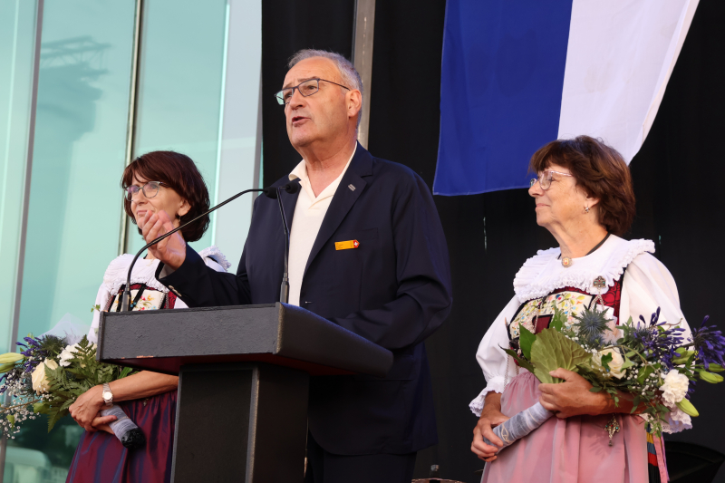 Um 19 Uhr startete der offizielle Festakt mit einer Rede von Ständerätin Andrea Gmür. Als sie die Gastgemeinde Hildisrieden erwähnte und sagte «Hildisrieden hat letztes Jahr das ganze Jahr gefeiert, sie wissen wie man feiert, ich bin überzeugt, dass sie auch heute Abend lange feiern werden», brandete der grösste spontane Applaus aller Programm-Höhepunkte auf. Der Direktionsvorsteher der Umwelt- und Mobilitätsdirektion, Stadtrat Adrian Borgula, überbrachte ein Grusswort des Stadtrates. Er betonte: «Demokratie ist nie fertig, sie entwickelt sich ständig weiter.» Dann leitete Andrea Gmür über zum Höhepunkt des Abends, der Rede des Wirtschaftsministers Guy Parmelin.