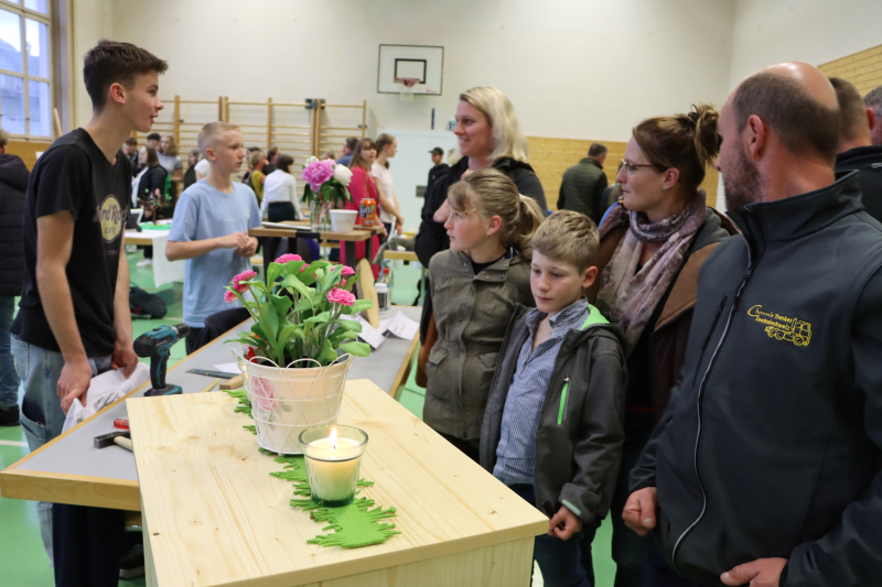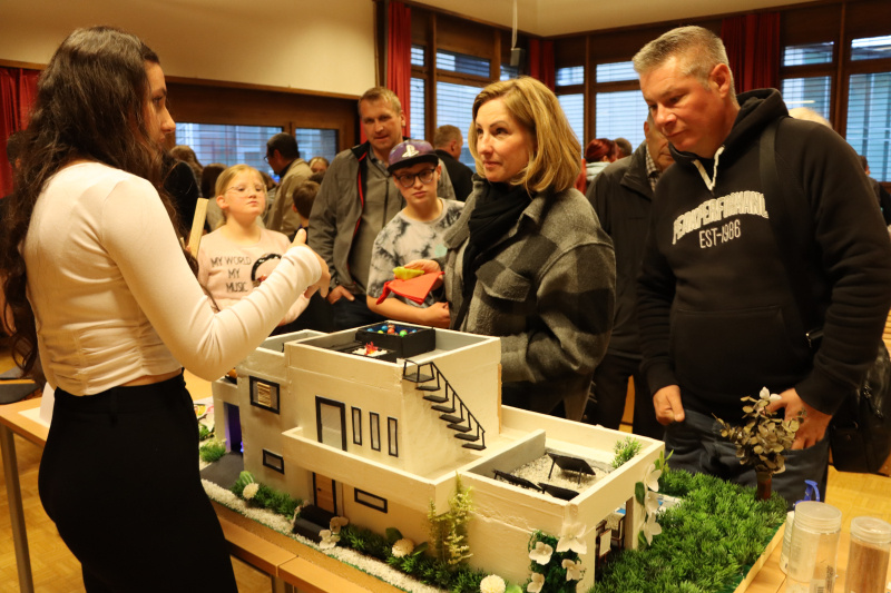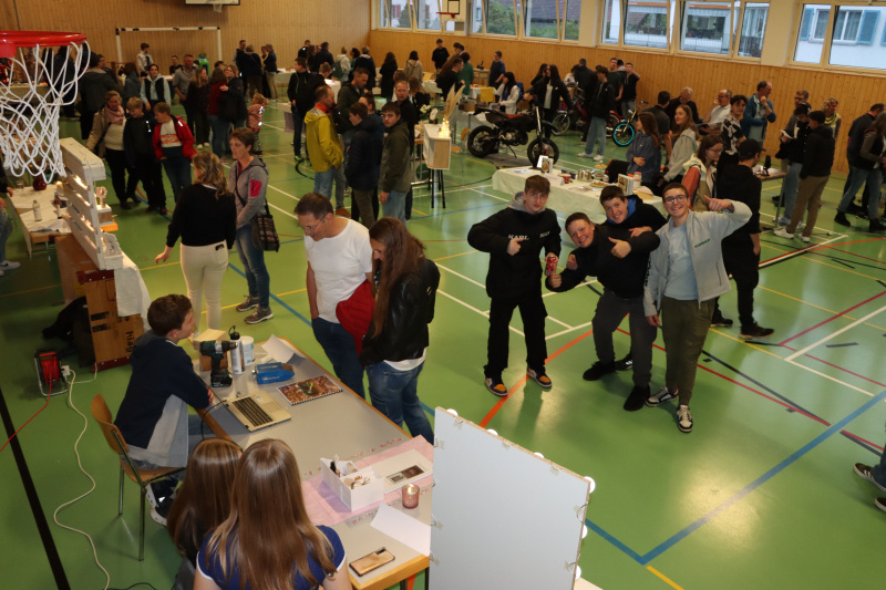 Die Vielfalt der präsentierten Arbeiten in den drei Hallen des Schulhauses St. Michael in Beromünster ist enorm. Beeindruckend ist vor allem die Freude, mit der die Jugendlichen sie präsentieren. Eigentlich wirkt alles fast wie eine kleine Gewerbeausstellung, mit sprühend jugendlichem Partyeffekt. Alle sind fröhlich und aufgestellt. Zeitweise gibt es zwischen den vielen Präsentationstischen fast kein Durchkommen mehr, so gross ist der Besucheraufmarsch.