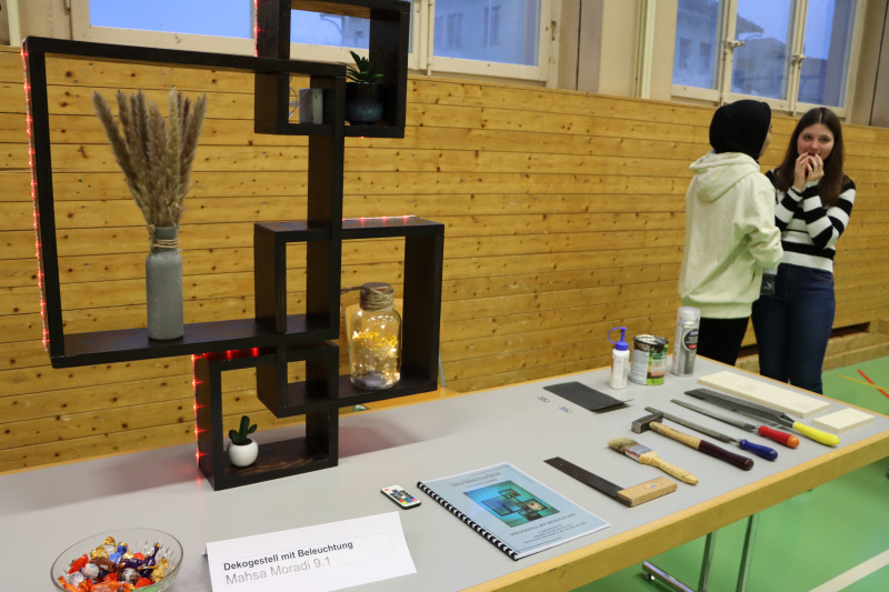 Von Kampf oder Schwierigkeiten war aber am Dienstagabend auf dem Schulareal St. Michael nichts mehr zu spüren, bloss Freude, Spass und Stolz über das Erreichte, und sicher auch Erleichterung. Nur – das mit der «ganzen Wohnungseinrichtung» dürfte etwas schwierig werden. Die Sachen sind nämlich kaum zu haben. Die Jugendlichen haben selber solche Freude daran und haben ihre Werke meist für ihr eigenes Zuhause oder ihre Liebsten bestimmt. Damit haben sie etwas sehr Persönliches geschaffen, was ihren eigenen Neigungen und Talenten entspricht. Von der Go-Pro-Kamera zur Velotour, vom Biketrail zum Spielplatz, vom Kochbuch zum Seidenkleid und vom Pferdezaumzeug zum Traumhaus ... in diesen Jugendlichen schlummert viel Potenzial. Mit Abschluss der Schulzeit und Start ins Berufsleben findet es neue Entfaltung.