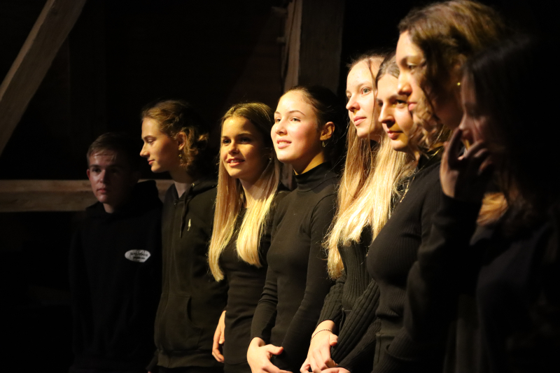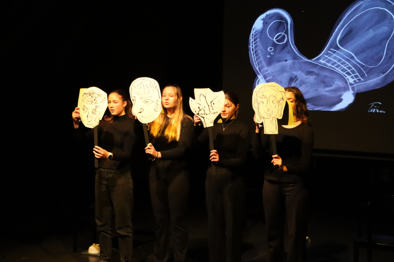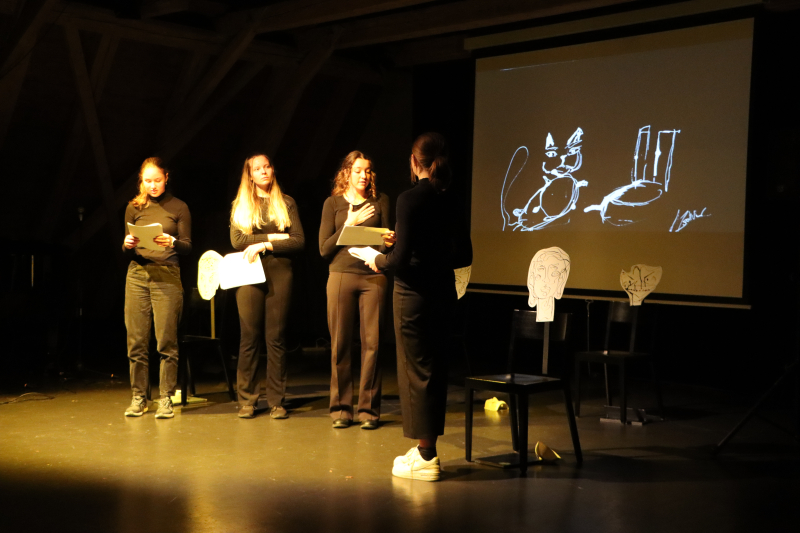 Darstellerinnen waren Gina Bucher, Mara Müller und Amelie Schmidiger aus der G22a und Philomena Hausheer aus der G20b, Gina Bucher, geprobt haben sie in ihrer Freizeit.