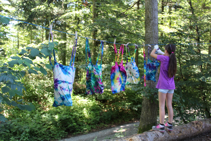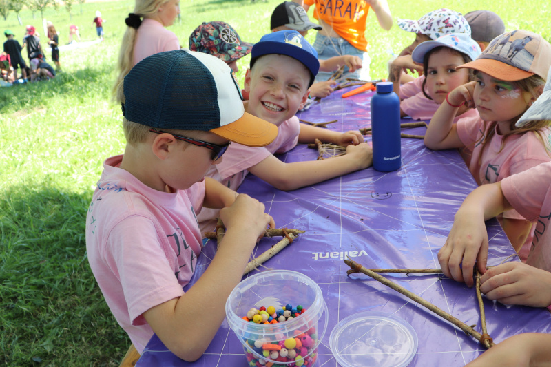 «Was ist Kunst?» Diese Frage stellten sich alle, die am Tageslager 2024 teilnahmen. Am Montagmorgen trafen wir uns alle im reformierten Kirchenzentrum in Gunzwil. Nach einem Theater und dem Lagerlied liefen die grösseren Kinder 10-13 Jahre zur Bogetenhütte in Gunzwil. Dort durften wir den Tag gemeinsam verbringen und vieles über die Kunst herausfinden. Zusammen malten wir Taschen, T-Shirts, Holzstecken, Steine und vieles mehr an, sodass der Lagerplatz schon bald völlig farbig war. Ebenfalls mit verschiedenen Naturmaterialien fertigten wir viele Kunstwerke, und auch mit Draht formten wir verschiedenste Figuren. Zusammen erschufen wir viele verschiedene Kunstwerke. Wir lernten auch, dass anfeuern eine Kunst ist, die uns nicht immer gelang. Aber dank dem Hüttenwart Galliker Alois, der uns jeden Tag ein Feuer entzündete, konnten wir doch gemeinsam eine Wurst bräteln.