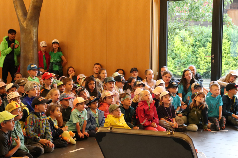 Eine weitere Form von Kunst ist auch der Tanz. Das entdeckten wir, als wir uns für den Gruppenwettkampf vorbereiteten, der immer am Mittwochabend stattfindet. In den verschiedenen Gruppen übten die Kinder fleissig das Lagerlied und performten dazu einen Tanz. Jede Gruppe lieferte eine super Choreografie ab, was es der Jury gar nicht einfach machte. In noch vielen weiteren Kategorien massen sich die Kinder, unter anderem beim besten Witz, das beste Leiterverkleiden oder das beste Foto vom Foto-OL, der am Mittwochmorgen in Beromünster stattfand.