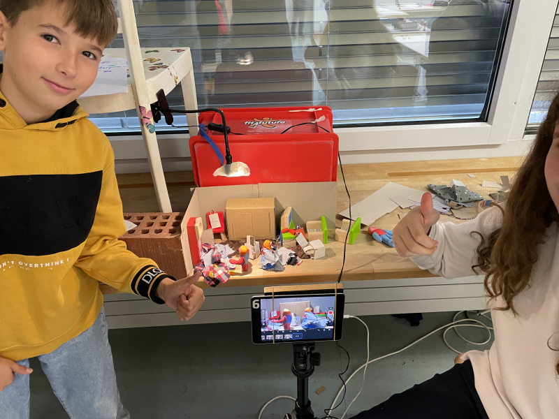 Im Rahmen von «Schule und Kultur im Kanton Luzern» (Schukulu.ch) wurden die Kinder anfangs der Woche altersgerecht in das Thema eingeführt. Anhand von verschiedenen Kurzfilmen fanden sie heraus, wo der «Trick» in den Filmen steckt und wie diese mit verschiedenen Techniken erstellt werden. Mit diesem Hintergrundwissen ging es an die Planung eines eigenen Filmes. Dabei war das Thema «Klimawandel» die einzige Vorgabe für das Produkt.