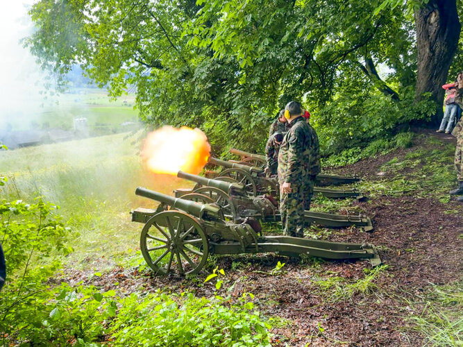 Die ersten Salven sind an Fronleichnam bereits am Morgen um 6 Uhr zu hören.In dieser Kadenz ging es auch am Morgen von Fronleichnam ab sechs Uhr weiter. Während der Messe in der Stiftskirche war dann perfektes Timing gefragt. Vereinspräsident Alfons Käch sorgte per Funk dafür, dass die Wandlung von Brot und Wein präzise, mit jeweils zwei Salven akustisch untermalt wurde.