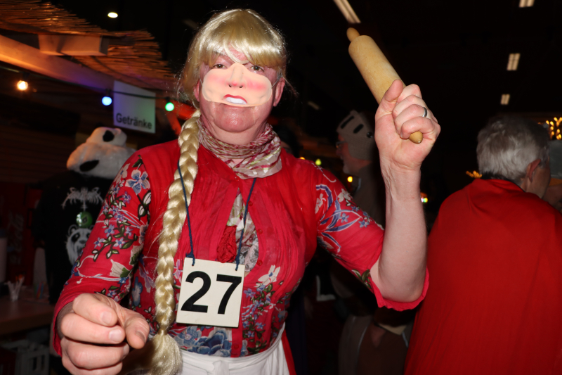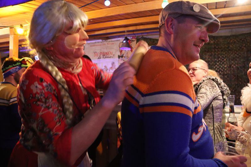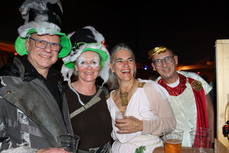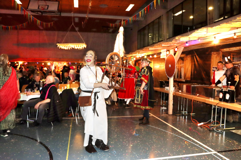 Rita I. war als Obelix im Küchendienst, trug statt Hinkelstein viele Tabletts und meinte ebenfalls, sie könne es diese Fasnacht etwas «relaxter» nehmen. «Ich gebe wieder viel mehr Gas!» Die Ringo’s drehten nochmals einen auf – oh Baby Baby balla balla – und schon war die Tanzfläche wieder mit vielen Tanzpaaren gefüllt. Römer Roli tanzte nonstop. Gerda und René hatten wie seit Tagen schon ihren Bartisch dabei, ihnen dampfte der Hut mit Zaubertrank. Cleopatra Claudia war erst seit ein paar Stunden Mitglied der Zunft – ja, so schnell kann das gehen. Lidia, die schöne Römerin in Toga, hatte ihre perückierte und frontal ausstaffierte «Freundin» dabei – wer war das nur? Die Spinnerin tanzte immer noch mit ihrem Rad und drei Druiden hüpften um einen Kochtopf herum und schenkten Zaubertrank aus. Auch Evi als Keltin hinter der Bar schenkte viel Flüssiges aus, strahlte und lachte: «Jaja, sie trinken schön!» Alle seien in guter Stimmung, locker und gut aufgelegt. Ein «Stössucheib» im Skipulli stand an der Bar und fand, es sei gemütlich hier, nicht so überlaufen, man könne sich noch gut unterhalten.