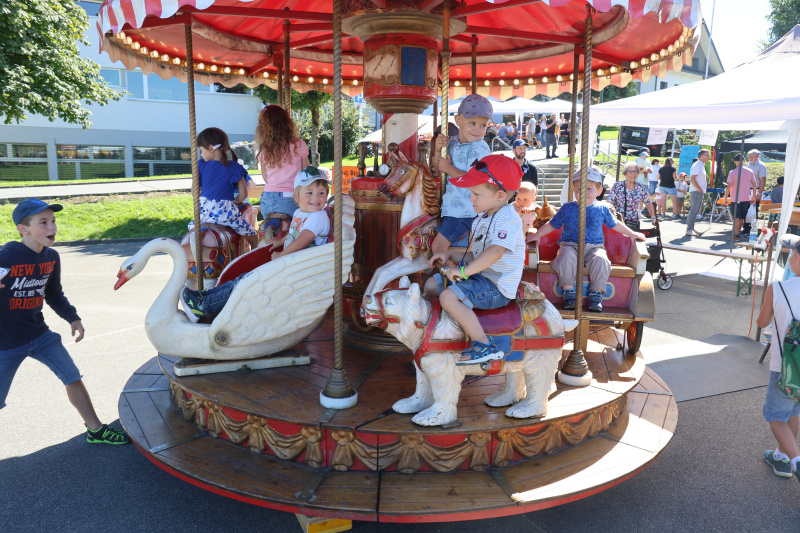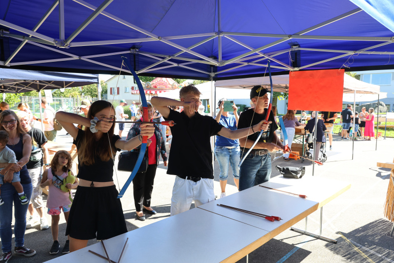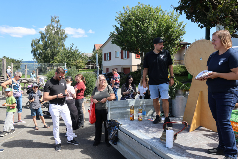 Der Gottesdienst wurde musikalisch vom Jodlerchörli Hitzkirchertal umrahmt. Dann übernahmen die Dorfvereine auf dem Schulhausplatz das Zepter und die Kilbistimmung breitete sich aus. Viel Spiel und Spass für die jüngeren Semester gab es mit Büchsenwerfen, Pfeilbogenschiessen und diversen anderen Herausforderungen für die Geschicklichkeit. Und natürlich zauberte das «Rösslispiel» Begeisterung auf die Gesichter aller reitfreudigen Kinder. Zum Mittagessen spielte die bekannte Band «Cantinas» auf. Derweil machten es sich die Eltern oder Älteren an den Tischen gemütlich. Keine Kilbi ohne Glücksrad – auch diesmal drehte und sirrte es im Sekundentakt, während Lebkuchenherzen und andere leckere Preise an die neuen Besitzer ausgehändigt wurden. Der Aufmarsch zeigte, dass die Beliebtheit der Schwarzenbacher Dorfkilbi so gut wie konkurrenzlos ist. Denn sie entfaltete ihre Magnetwirkung mühelos während die Ereignisse am ESAF bekanntlich zeitgleich ihrem Höhepunkt entgegen schritten.
