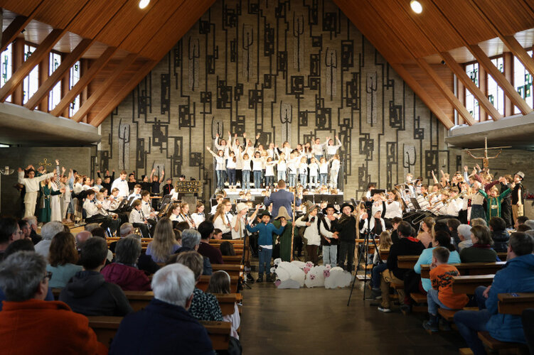 Bei der grossen Chornummer waren die Augen auf Sven Rogger gerichtet.Über die Freude am KrippenspielNach dem klangvollen Einstieg übernahmen die Schülerinnen und Schüler aus Beromünster das Wort. Mit einer Prise Humor führten sie ins bevorstehende Krippenspiel ein. Es handle vom Christkind, erklärten die Buben – gesehen hätte man es zwar noch nie, Geschenke habe es aber trotzdem gebracht, was ja ein gutes Zeichen sei. Die Mädchen…