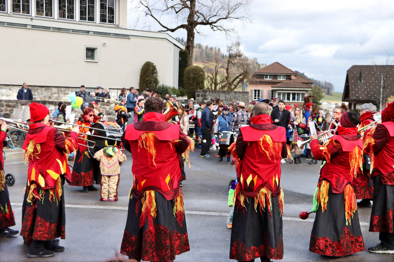 Diese kam auch anschliessend auf dem Kirchplatz zum Ausdruck, wo die Rekkebrägler bereits mit dem zweiten Ständchen aufwarteten und die «Youngsters» der Bogeteguugger den Apéro für die Bevölkerung ausschenkten. Ein gemütliches Zusammensein bei auffrischendem Wetter. Zufrieden gings dann – je nachdem – den sonntäglichen Umzügen entgegen oder aber der warmen Stube zuhause. Die Halbzeit der Fasnacht war bereits geschafft.