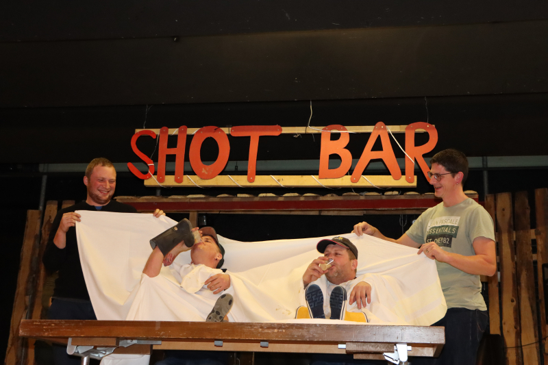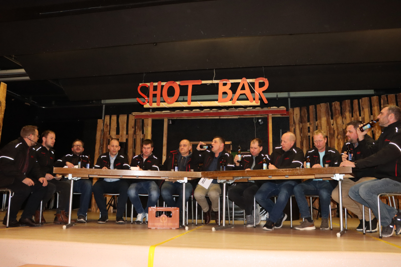 Zu guter Letzt wurde dann in Sachen Ehrungen noch einer draufgehauen. Dazu wurde auf der Bühne ein Stammtisch inszeniert, an dem die abtretenden Leutnante noch einmal so richtig durchgenommen wurden mit Scherzen und Anekdoten. Manche Jungs zeigten dabei unter dem Feuerwehrkäppi ihr verstecktes Showtalent.