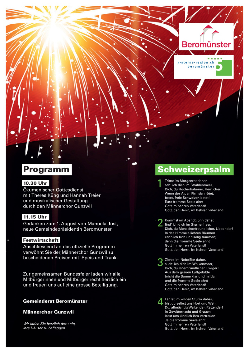 Am Dienstag, 1. August 2023, 10.30 Uhr bei der Lindenhalle Gunzwil