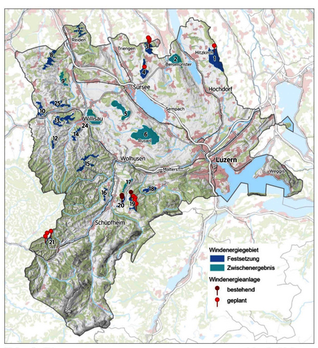 Die Energiestrategie 2050 des Bundes strebt unter anderem den Bau von Windenergieanlagen an, und möchte 7 Prozent des Bedarfs damit decken. Standorte für solche Anlagen sollen in den kantonalen Richtplänen festgesetzt werden. Beim Kanton Luzern ist eine Richtplanrevision am Laufen, das Thema Windenergie wird aber in einer vorgezogenen Teilrevision separat behandelt. Nun ist das überarbeitete Windenergiekonzept des Kantons Luzern noch bis am 27. Januar öffentlich aufgelegt, es definiert mögliche Standorte für Windenergieanlagen vor, drei davon im Michelsamt.