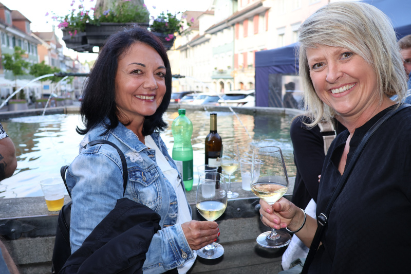 Kurz wurde der perfekt passende, emotionale Song «Good Bye, Bye Bye» von Willy Tell eingespielt, 2015 geschrieben, also quasi aus den Anfängen der Enoteca, bevor Manuela Felix um punkt 21 Uhr das Wort ergriff und kurz und treffend sprach: «So, liebe Sybille, lieber Wädi. Sybille, als du uns dieses Video gesandt hast mit diesem Lied, sind mir also schon ein wenig die Tränen gekommen. Wir sagen Danke! 10 Jahre «mit Emozioni». 10 Jahre «grosse Schule», 10 Jahre «öppenemal das grosse Gesülze». Wer kennt diese Worte nicht? Wir sagen euch Danke für die erlebnisreiche und schöne Zeit bei euch und mit euch. Wädi, du hast nie gesagt, du seist ein einfacher. Da stimmen wir dir zu...» Die weiteren Dankesworte gingen fast etwas in einer riesigen Applaus- und Gejohlewelle unter. Wädi verdrückte hinter der Brille verstohlen eine Träne. Man spürte, wie die Anwesenden das Gastgeberpaar und das ganze Team der Enoteca über all die Jahre ins Herz geschlossen haben. Eine Festbesucherin meinte: «Sie haben so viel für die Gemeinde und das Michelsamt geleistet, deshalb habe ich sie dieses Jahr für den Innovations- und Förderpreis der Gemeinde Beromünster für besonderes Engagement vorgeschlagen. Ich bin gespannt, ob sie im November obenaus schwingen werden.»