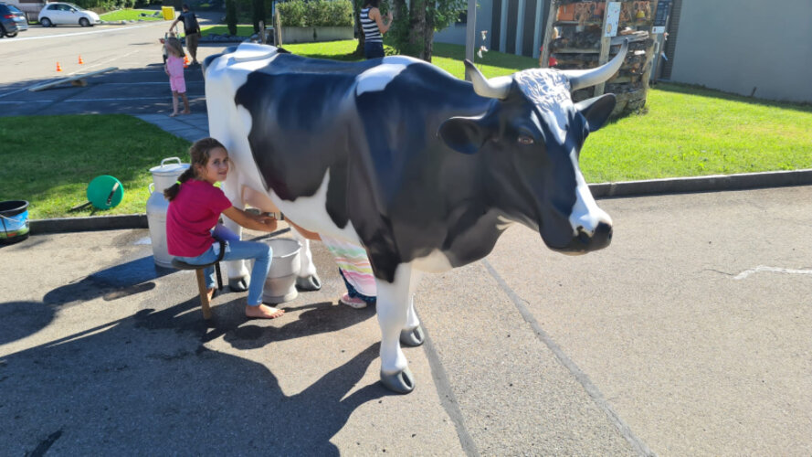 Familientreff Neudorf: Bauernolympiade mit Melk-Kuh-Attrappe