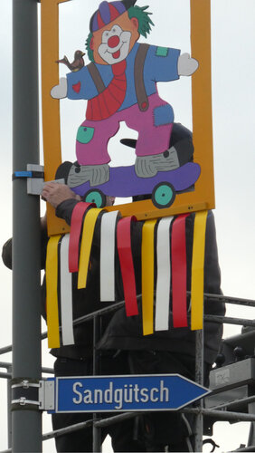 Bereits am Samstag nach der Inthronisation von Oliver I. als Götschizunftmeister legte dieser selbst mit seinen Untertanen (alias Zunfträten) Hand an, die Luzerner- und Aarauerstrasse zu schmücken und die Passanten einzuladen zum heurigen Fasnachtsumzug, der wegen der Pandemie zwei Mal verschoben werden musste.