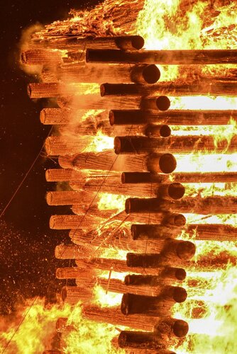 In Eich wurde das Burnout des Mammut-Höhenfeuers der Feuerfreunde zum erwarteten Publikumsmagnet. Hunderte reisten aus nah und fern an, um am Spektakel dabei zu sein.