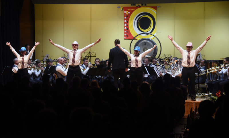 Die Feldmusik Gunzwil hat heute ihr Konzertwochenende, welches unter dem Motto «Let’s Dance» stand, mit ihrem zweiten Auftritt abgeschlossen. Im Bild die zweite Zugabe, der Hit «Y.M.C.A.» der Village People, dieser hat sich inzwischen auch im Brass-Band-Genre seinen Platz erkämpft und sorgt auch nach 45 Jahren noch für beste Stimmung und animierte zum Mittanzen.