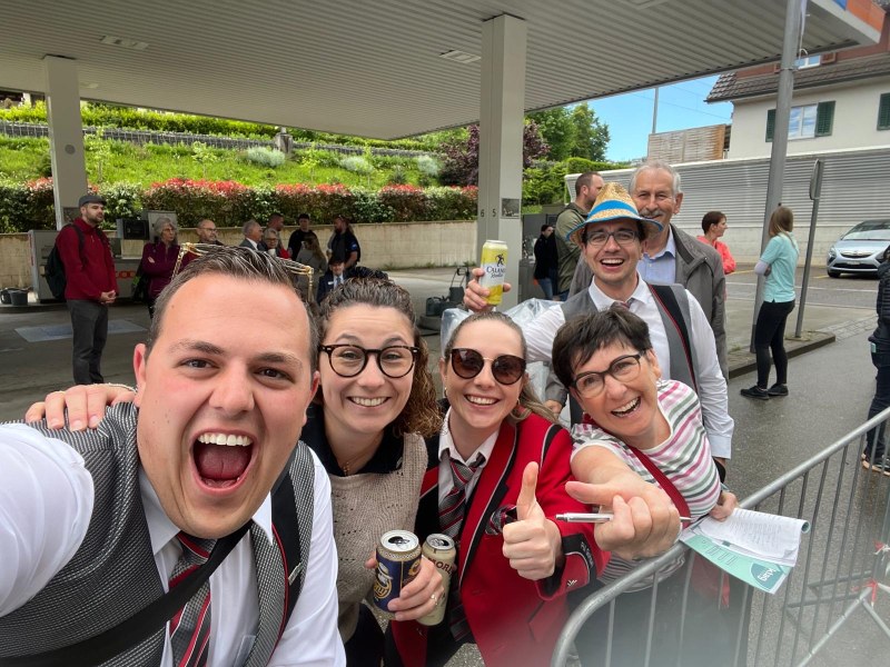 Gut gelaunt trafen sich alle nach dem Mittagessen zur Parademusik. Nach einer letzten Instruktion ging es mit dem Marsch «Casaulta» von Oscar Tschuor auf die Paradestrecke. Es ist immer schwierig einzuschätzen, ob alles gepasst hat. Fünf Experten kontrollieren, ob alle still stehen, richtig abmarschieren, zusammen das Instrument hochnehmen und der Marsch auch richtig gespielt wird. Sind die Reihen beim Marschieren ausgerichtet, werden die Instrumente zusammen heruntergenommen, stoppen am Schluss alle gemeinsam und sind noch immer alle ausgerichtet?
