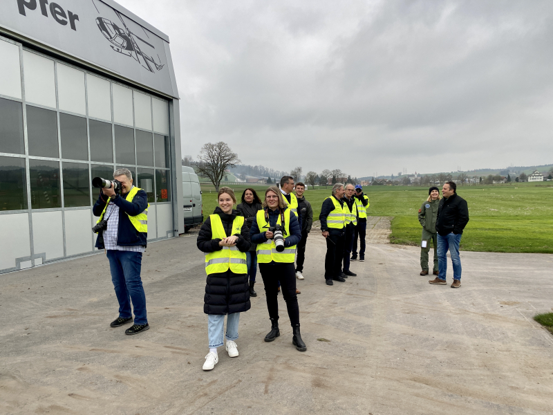 Präsident Hans-Rudolf Müller, Michael Spanier, Marc Siegenthaler, Bruno Ritz, Urs Reber als Chef Fluglehrer, Jürg Wildi als Vizepräsident, Patrizia Wandeler: alle waren sie anwesend. Dazu verschiedene Vertreter der Gemeinderäte Beromünster und Rickenbach. Der verkürzte eigentliche Flugevent bot dann umso mehr Gelegenheit für Austausch untereinander. So konnte man auch mit dem Kommandant des PC-7-Teams, Daniel Stämpfli, oder auch «Stampa», wie ihn seine Fliegerkollegen nennen, der von Emmen aus im Einsatz ist, und mit Berufsmilitärpilotin Ines Widmer aus Dübendorf einen Schwatz halten, die seit 30 Jahren beruflich fliegt, bevor sie wieder Richtung Dübendorf abflogen. Und man konnte bei der Airport Helikopter AG in den Hangar schauen und Eindrückliches sehen und erfahren. Auch die Leiterin des Restaurants Flüüger, Alexandra Rossi, freute sich, dass sehr viel Betrieb in ihrem Restaurant herrschte und sie sich mit ihrem Team in den letzten gut zwei Jahren einen sehr guten Ruf als Restaurant aufbauen konnte, wo man gut isst und etwas erlebt.