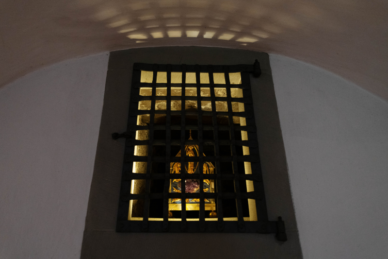 In der frühromanischen Krypta, wo man bei der monatlichen Führung durch das Stift Zutritt hat.