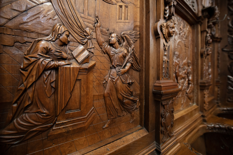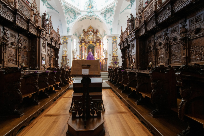 Das reich geschnitzte Chorgestühl von 1609 ist ähnlich demjenigen von St. Urban, jedoch fast 100 Jahre älter – unglaublich facettenreich.Das Chorgestühl wurde von den Brüdern Melchior und Heinrich Fischer aus Eichenholz geschnitzt. Es zeigt die Lebensgeschichte von Jesus. Man kann auch über 600 kleine sagenhafte Figuren von Engeln, Heiligen, Drachen und anderen Monstern entdecken.Unermesslich viel akribische Arbeit steckt in den filigranen Holzschnitzereien.