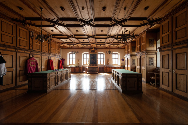 Blick in die Sakristei von 1679 mit riesigen Dimensionen, wäre als Ankleide auch für Frauen durchaus ein Traumformat.