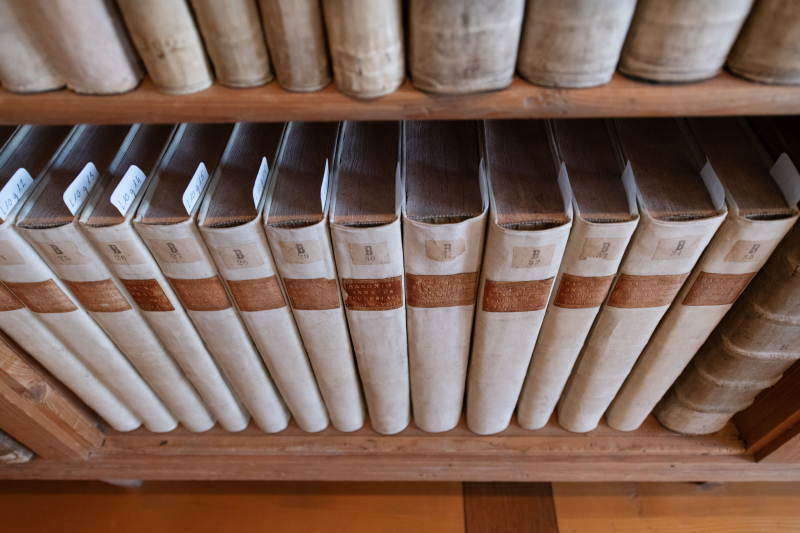 Hier lagern alle Partituren des Stiftschors. Namhafte Komponisten haben eigens für Beromünster Instrumental- und Vokalwerke geschrieben, z.B. mehrchörige Messen (Franz Joseph Leonti Meyer von Schauensee, Anton Stamitz, der Bruder von Karl Stamitz). Eine grosse Musikaliensammlung, die viele handschriftliche Unikate enthält, zeugt davon.
