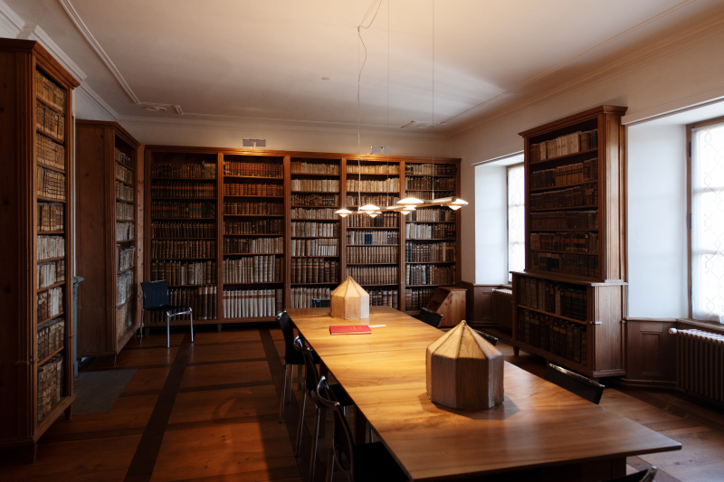 Die Stiftsbibliothek innerhalb der Propstei kann bei Führungen besichtigt werden und lohnt sich auf jeden Fall.Blick auf die Waldkathedrale, die ebenfalls jeden Besuch lohnt. Die Bibliothek mit vielen unschätzbar wertvollen Präziosien strahlt die Aura der Allwissenheit aus.
