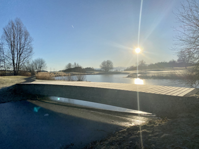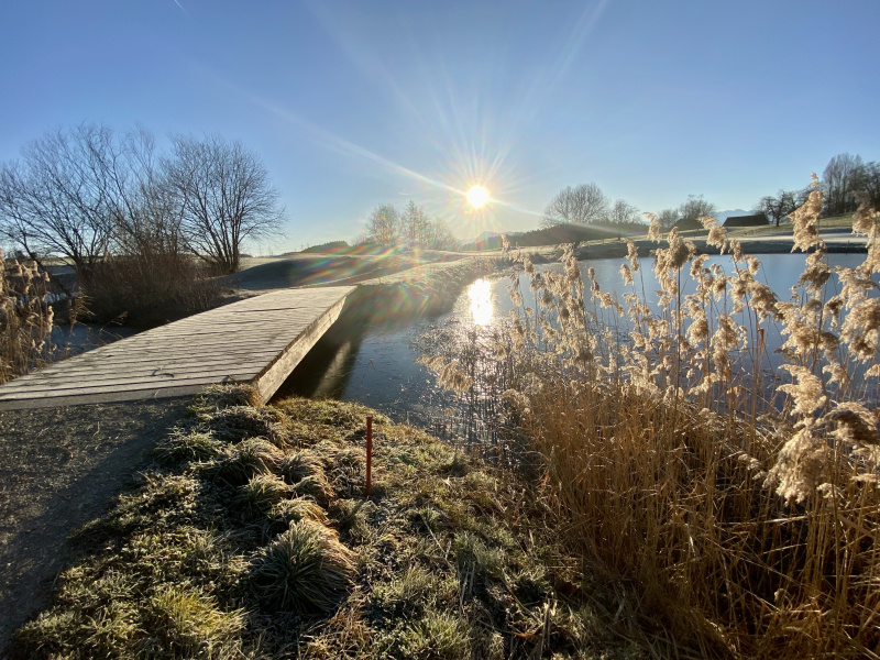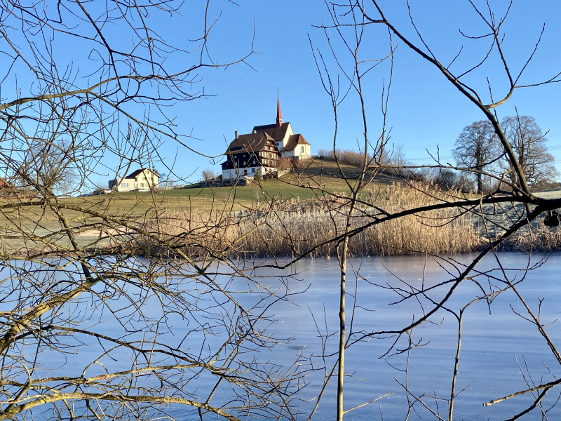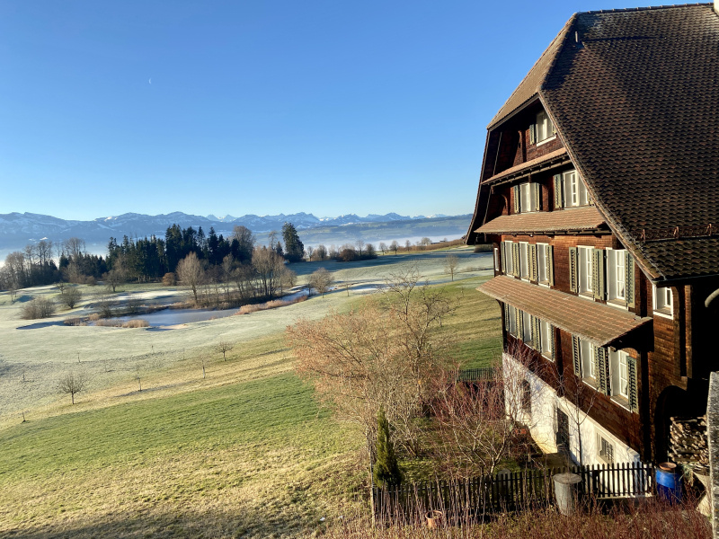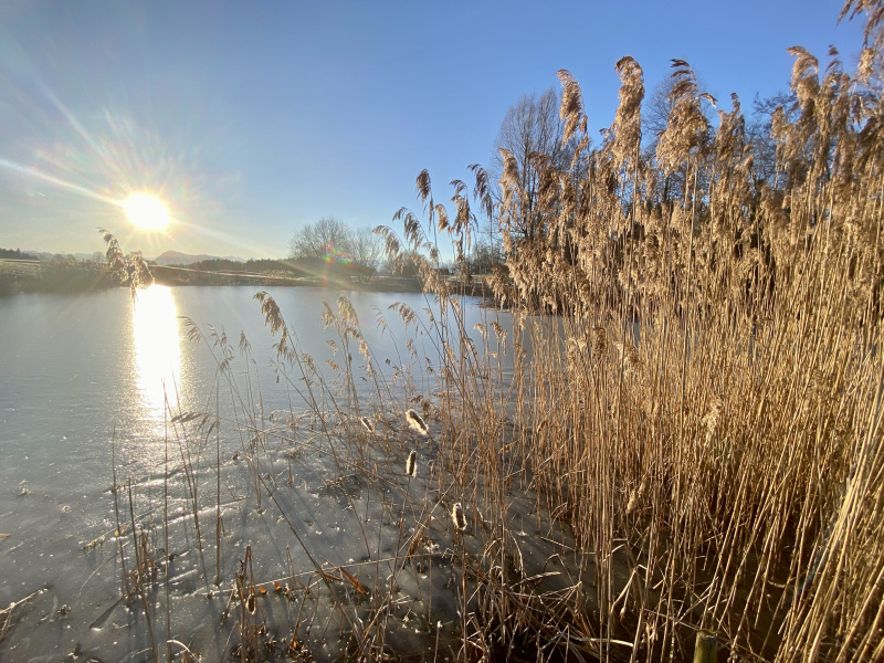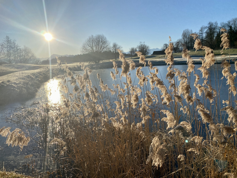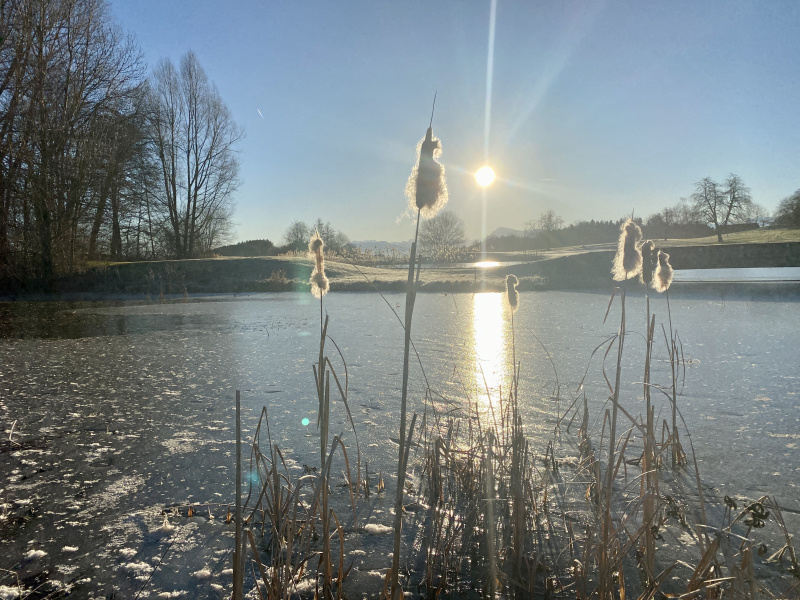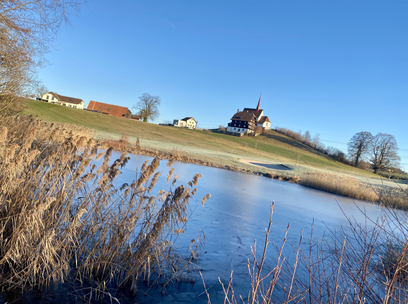 Am Mittwochmorgen rund um Gormund war diese Woche wieder mal eine unglaubliche Sicht. Mehr als ein Hauch von Frühling, und doch noch kalt, mit viel Raureif auf den Feldern, die Golfplatz-Teiche gefroren. Die Sonne wärmt schon kräftig, mit jeder Minute etwas mehr. Es ist ein unwirklicher, unentschlossener Zustand zwischen Winter und Frühling. «Mir wei nid grüble», sagen die Berner, und so wollen wir es auch halten und einfach still geniessen...