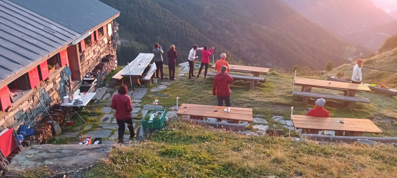 Wieder zurück bei der Hütte blieb Zeit für einen Imbiss, bevor die rund 3 ½-stündige Höhenwanderung Richtung Simplonpass unter die Füsse genommen wurde. Der Höhenweg führte wiederum durch Wälder, Wiesen, über Stege und Bäche. Man konnte sich austauschen, aber auch den eigenen Gedanken nachgehen. Auch diese Tour war bei angenehmer Wärme sehr abwechslungsreich. Thomy wählte die Haltestelle «Schallbett», um per Bus zurück zu den Autos in Ried-Brig zu gelangen.