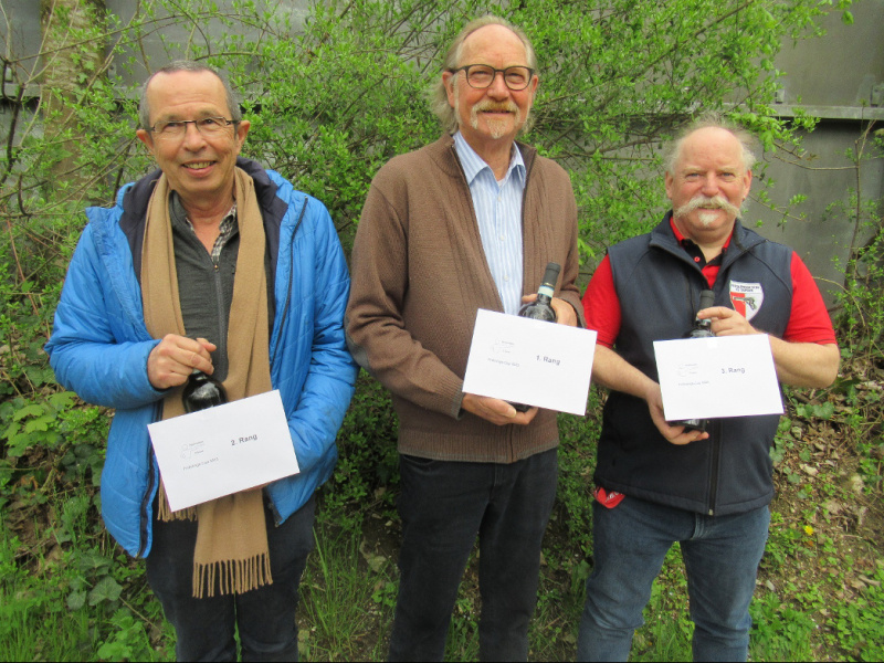 Die nach der Siegerehrung entspannten Frühlingscupfinalisten, von links: Hans Fischer, Karl Iseli, Jörg Glissmann.