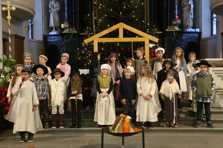 Rappelvoll war die Rainer Kirche am Heiligabend. Die Kinder der 2. Primarklassen hatten das Musical «Friede uf Ärde» in der Adventszeit eingeübt und luden damit in der Kindermette ein, Weihnachten zu feiern.Traditionsgemäss fragte die für die 2. Klassen verantwortliche Katechetin Béa Bucher die Kinder im Herbst, welche Rolle sie denn im Krippenspiel spielen wollten. Es wurden insgesamt 28 Rollen vergeben. Im Zuge der grossen Grippewelle vor allem auch bei den Schulkindern schmolz dann die Darstellergruppe immer mehr und am Aufführungstag übernahmen dann die Kindergottesdienstleiterinnen Yvonne Sigrist und Yvonne Wyss einige Sprechrollen.