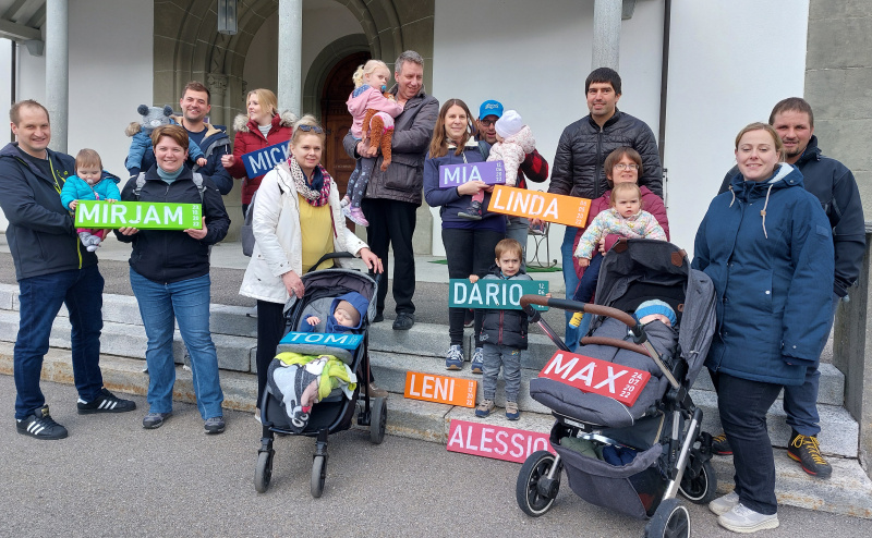 Von neun eingeladenen Tauffamilien konnten dieses Jahr sechs Familien an der Taufbaumfeier vom Palmsonntag, 2. April, teilnehmen. Bevor der Taufbaum von helfenden Vätern sowie Othmar Feer und Reto Bucher gefällt wurde, begrüsste die Co-Präsidentin des Pfarreirates Sara Bucher die Familien. An der Feier wurden die Namensschilder der Täuflinge den Tauffamilien überreicht. Sie durften nun mit nach Hause genommen werden. Die Tauffamilien versammelten sich anschliessend in der Kirche, wo mit Veneranda Qerimi und Theres Galliker eine kleine liturgische Feier stattfand.