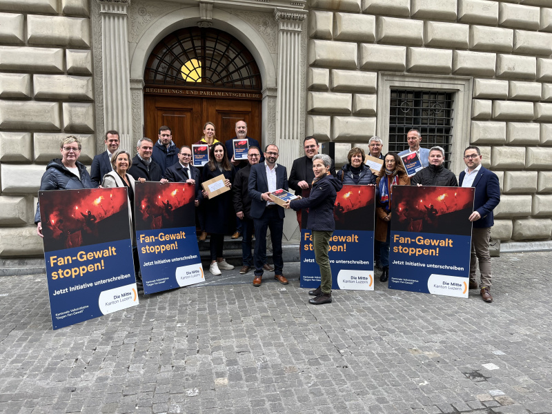 Mitte Mai 2023 startete Die Mitte Kanton Luzern die kantonale Volksinitiative «Gegen Fangewalt». Den Auftrag dazu gaben ihr die Delegierten, welche die Initiative mit einer grossen Mehrheit lancierten. Daraufhin arbeitete die Parteileitung die Gesetzesinitiative aus, startete mit der Unterschriftensammlung und reichte die Initiative mit 4 529 beglaubigten Unterschriften am Freitag, 19. April ein.