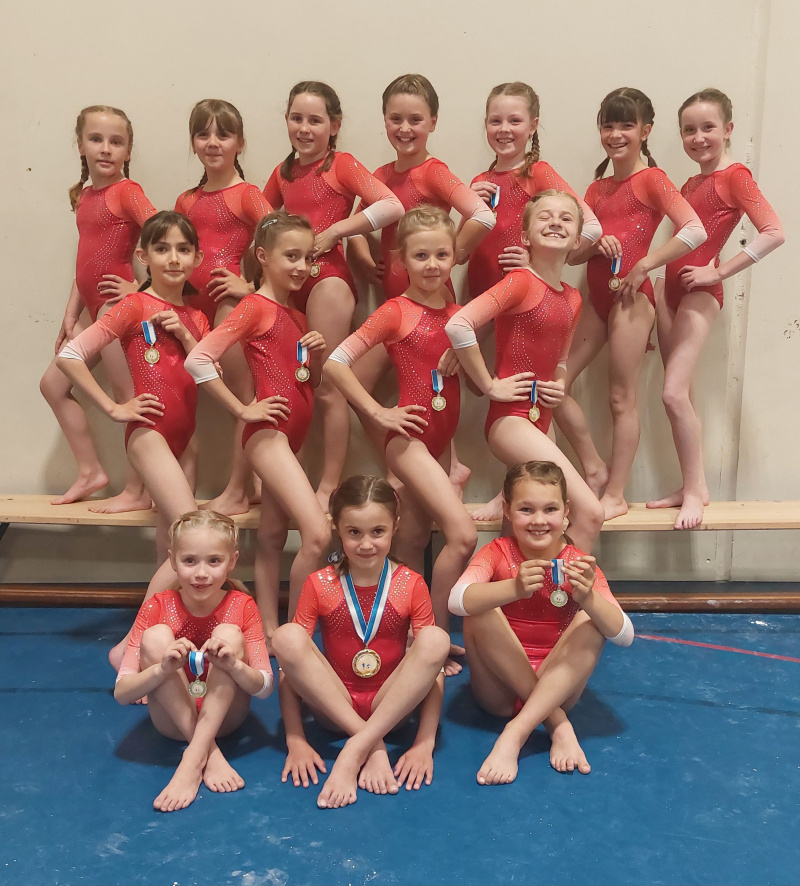 Die stolzen Turnerinnen in den Kategorien 1, 2 und 3. Allen voran Svenja Loser mit der Goldmedaille in der Kategorie 1.